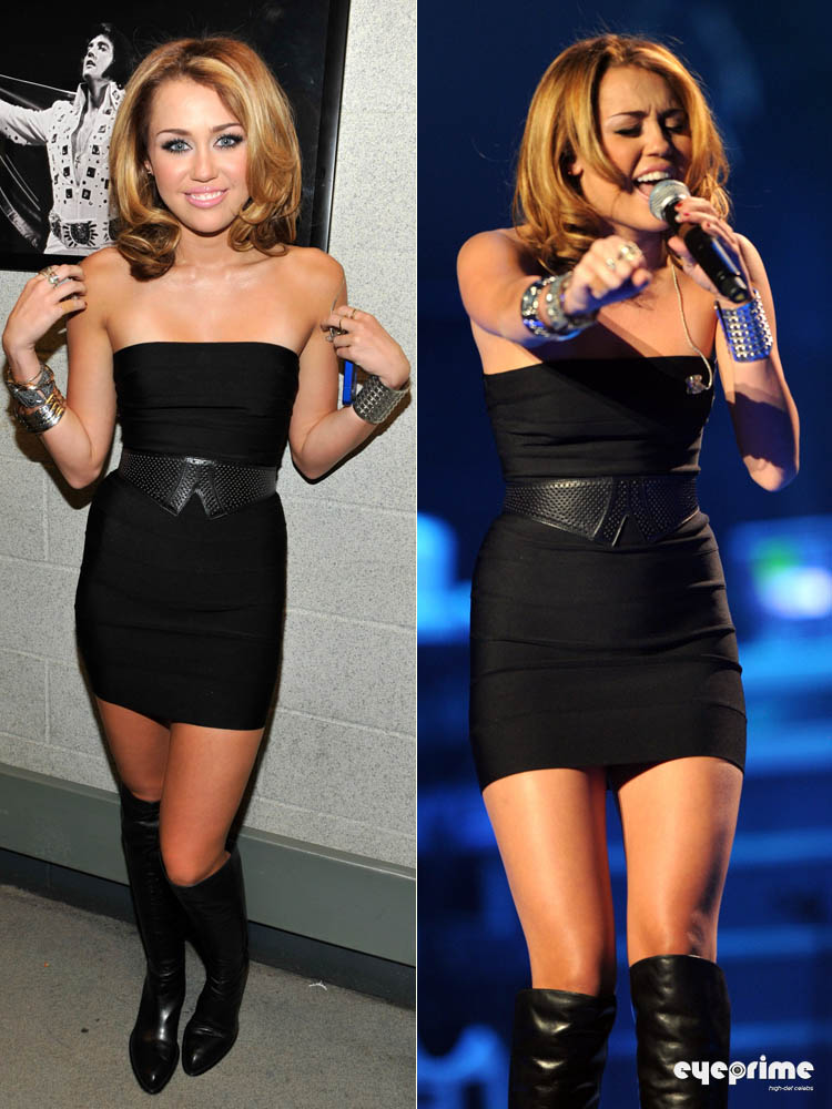 Miley Cyrus poses Backstage at Bieber's "My World" Docu in NY, Aug 31, 2010
