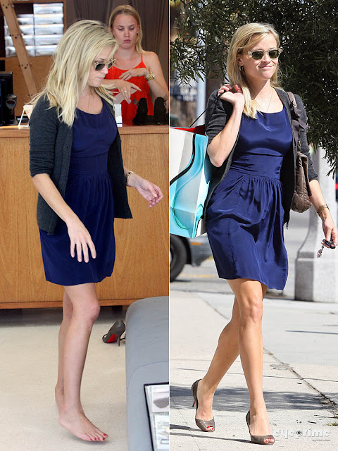 Friday September 17, 2010 - Reese Witherspoon indulges in a spot of retail therapy in West Hollywood's boutiques. Reese's red polished toe nails were on show, as she tried on high heels in the upscale shoe store Sigerson Morrison, before moving on to a dress boutique.