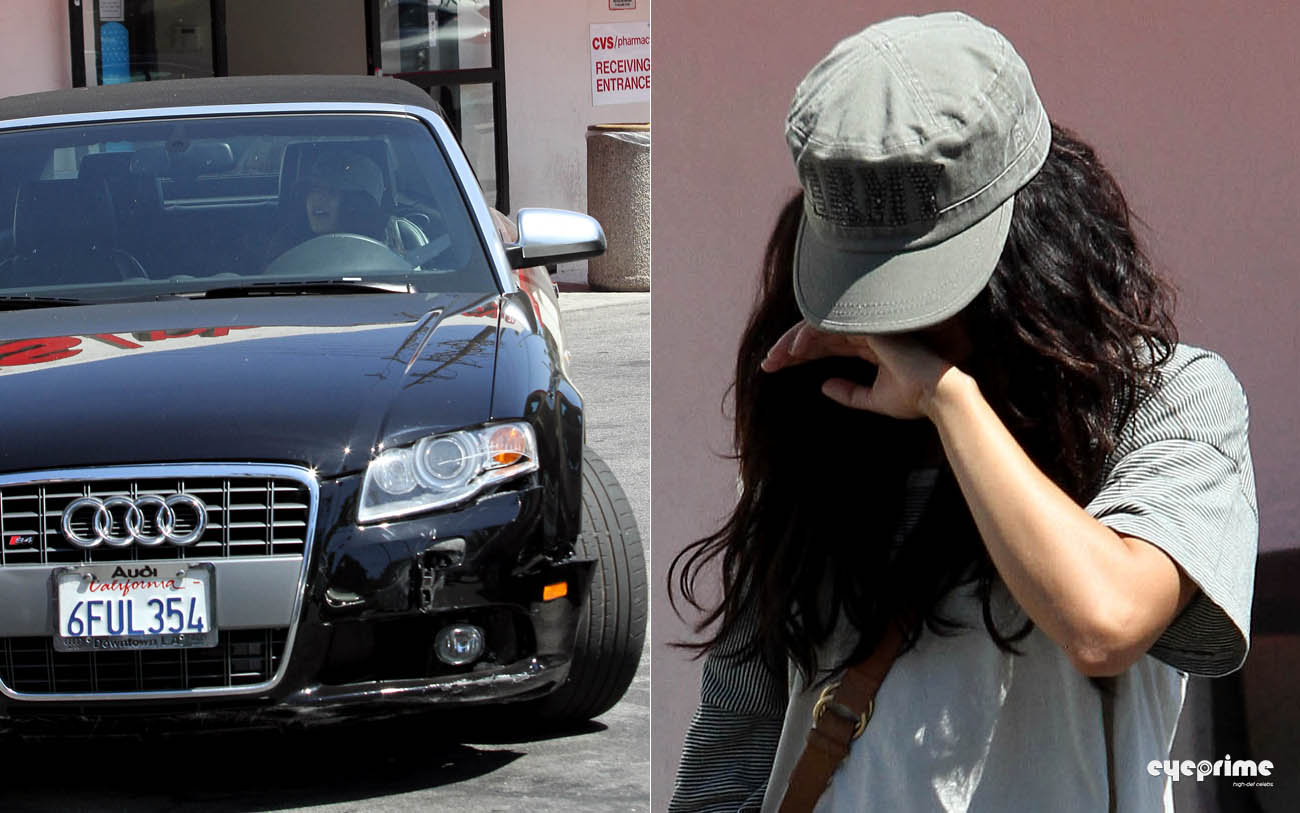 Looking upset and distracted today, High School Musical star, Vanessa Hudgens, causes a fender bender while trying to leave a CVS pharmacy parking lot in Studio City, on September 01, 2010