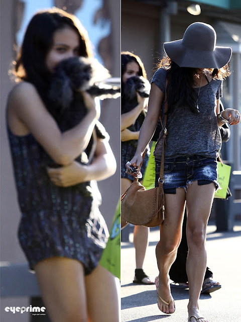 A shy Vanessa Hudgens covers her face with her hat as she walks back to her car after shopping at 'Planet Blue' in Malibu with her Mom and Sister - September 12, 2010