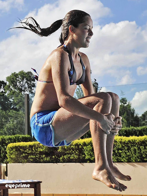Ana Ivanovic takes part in a Bombing Competition for a New Zealand TV Show at the Hilton on the Park Swimming Pool in Melbourne on January 14, 2011