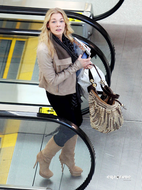 Newly engaged Leann Rimes rushes to catch her flight at the Washington DC airport on January 4, 2010 where the excited bride to be chatted on her phone and clutched a stack of wedding magazines.